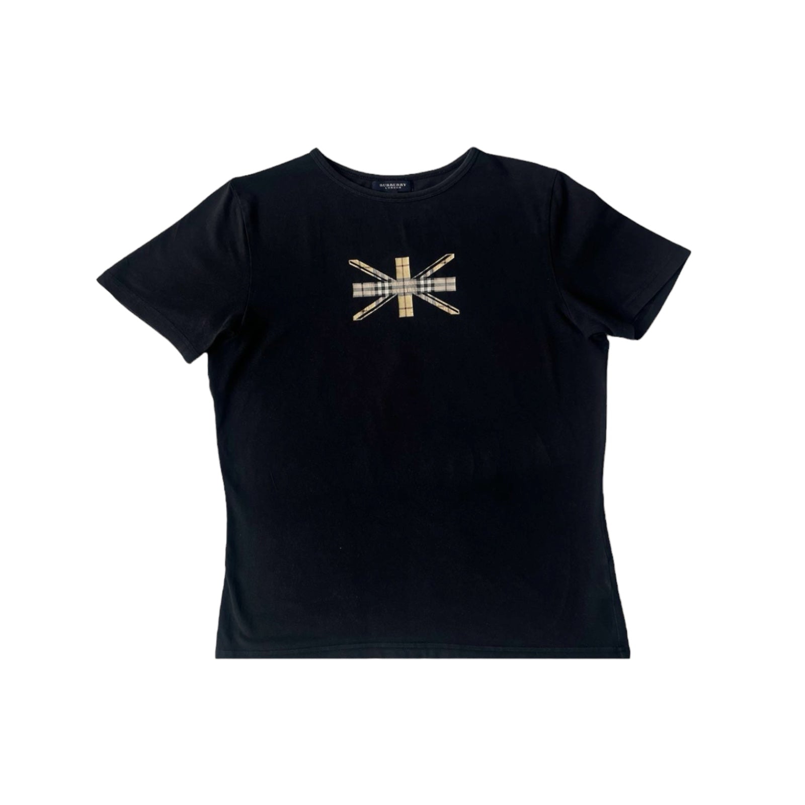 Burberry London Baby Tee. Plaid union jack graphic print. A classic 90s statement throwback.