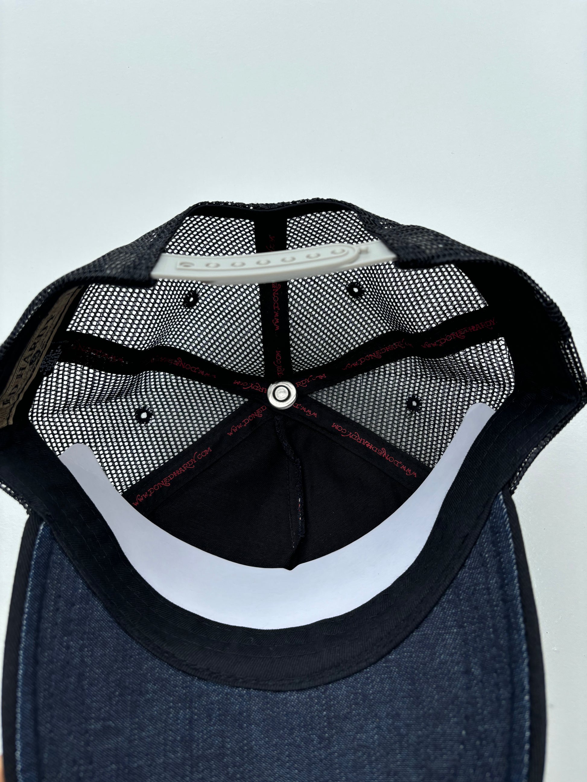 Deadstock Ed Hardy trucker cap in black from the early 2000s. Insane tattoo skull graphic with rhinestone detailing.