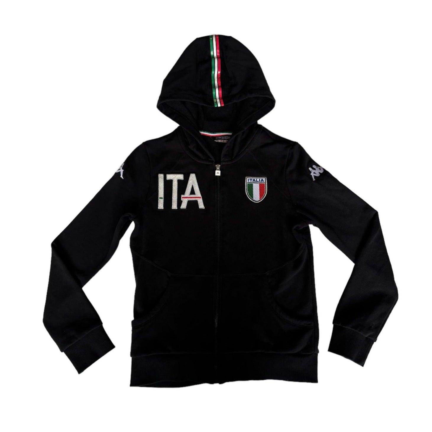 Vintage Kappa Italia Zip Up Hoodie with pockets. "ITA" statement design with Italian flag patch. Perfect for the winter weather.