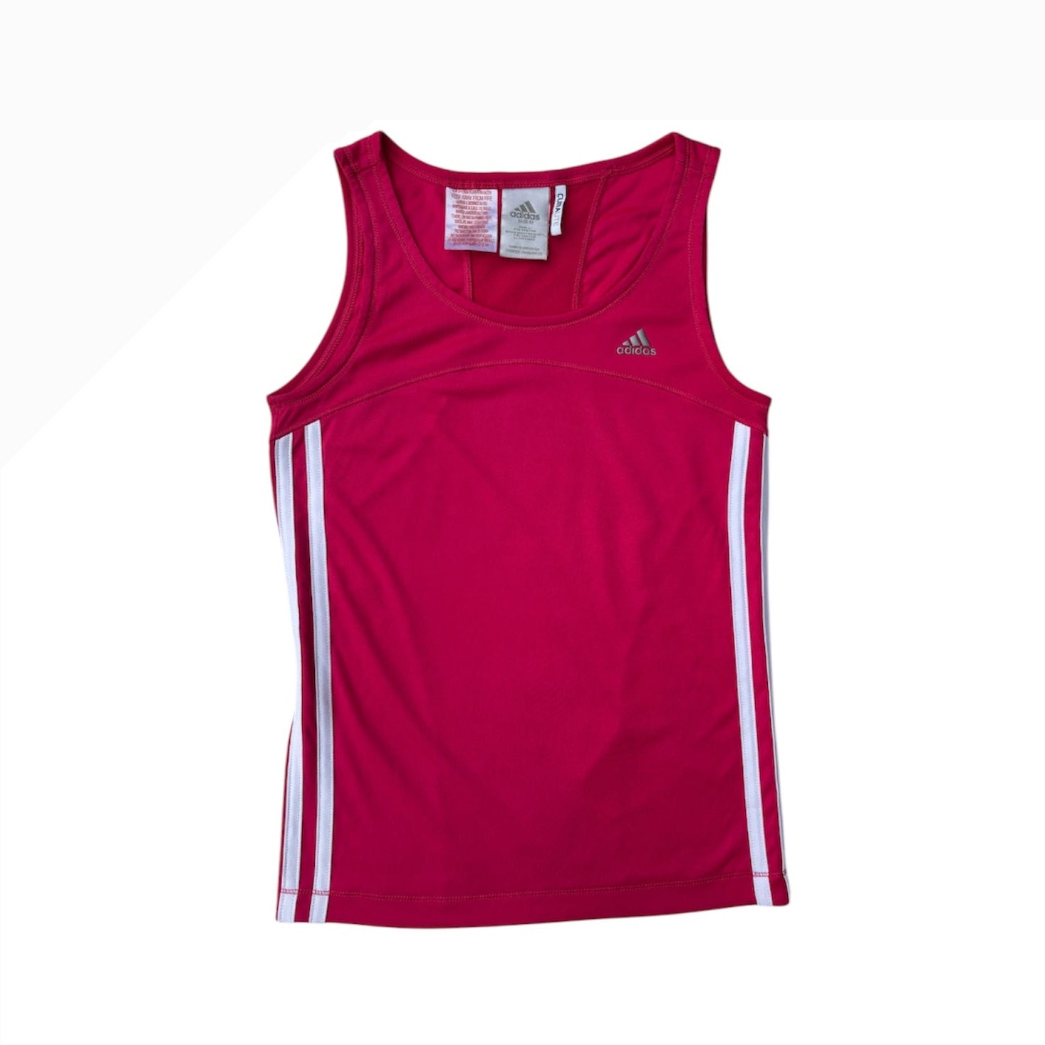 The perfect fit to look sporty but cute with this pink Adidas tank top. From the Climalite range.