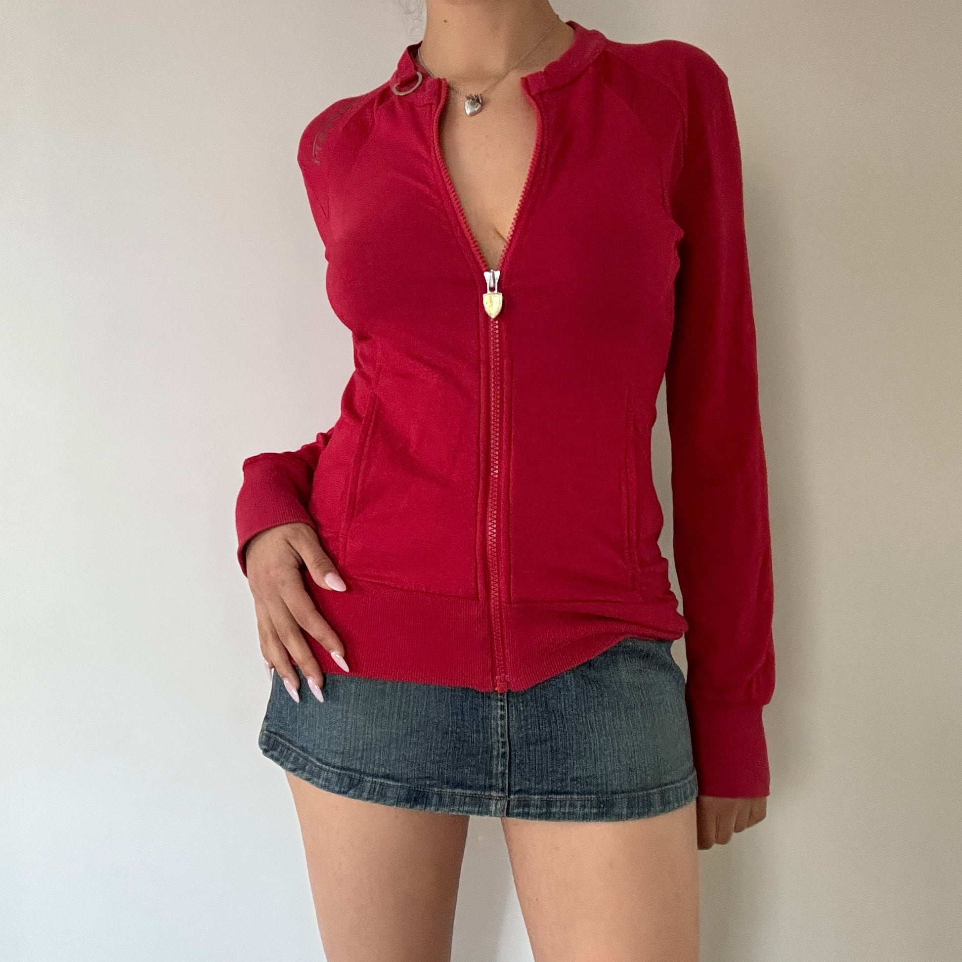 Official Ferrari Merchandise. Lightweight Zip Up Jacket with pockets. Beautiful cherry red colour way. Ferrari shoulder text detail and emblem zipper.